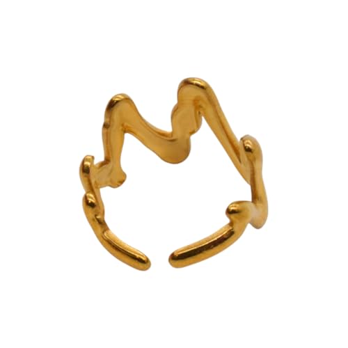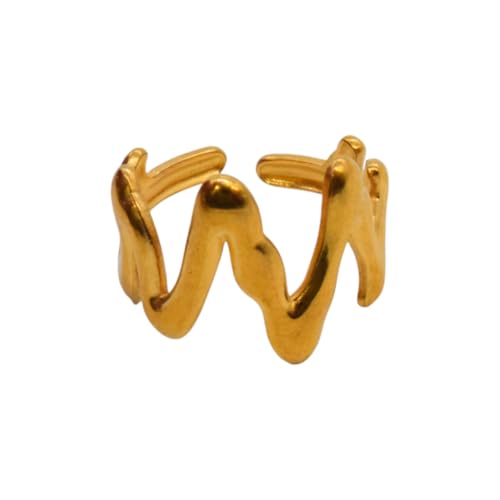 Generic - خاتم للنساء من الستانلس ستيل بتصميم سكويجلي، مقاس واحد - ذهبي