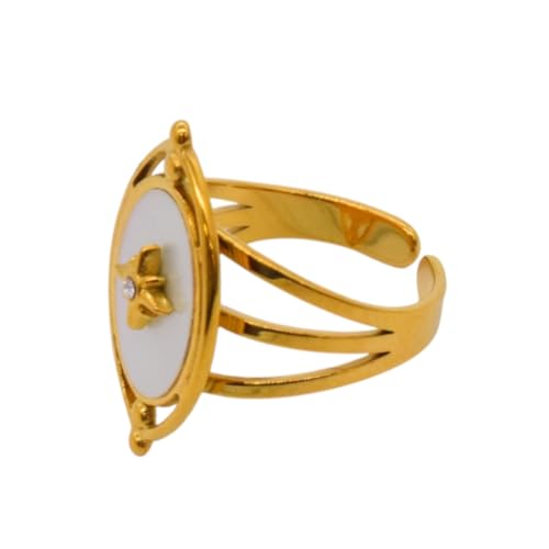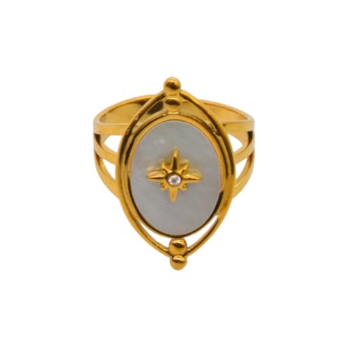 Generic - خاتم للنساء من الستانلس ستيل على شكل نجمة وعرق اللؤلؤ، مقاس واحد - ذهبي