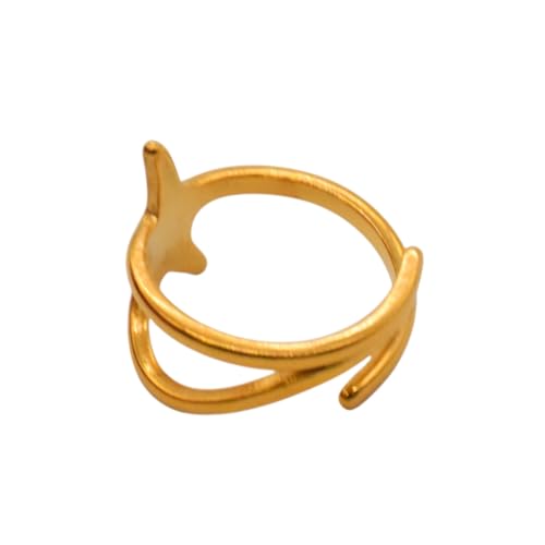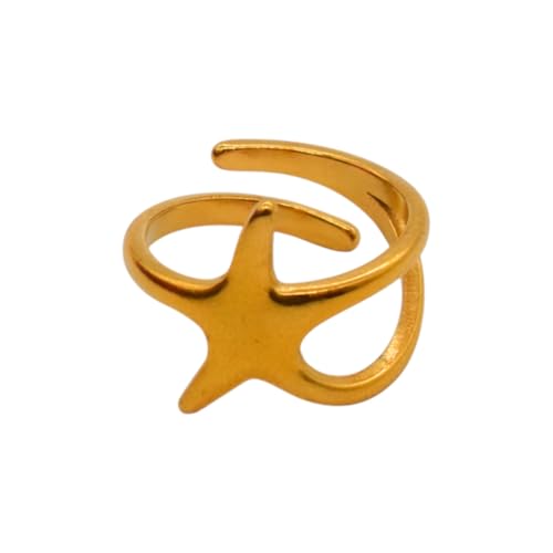 Generic - خاتم للنساء من الستانلس ستيل بتصميم نجمة، مقاس واحد - ذهبي