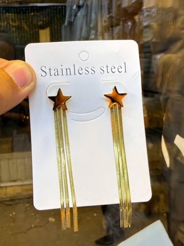 Generic - اقراط متدلية على شكل نجمة من الستانلس ستيل بلون ذهبي، مجوهرات عصرية للنساء