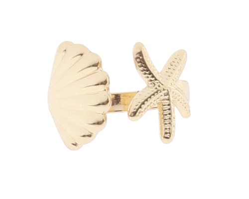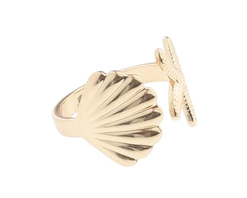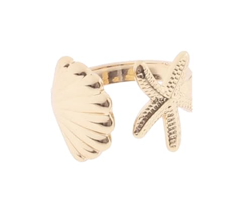 Generic - خاتم ستانلس ستيل على شكل نجمة وصدفة مقاس واحد للنساء - ذهبي