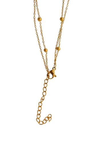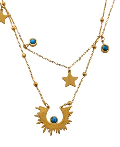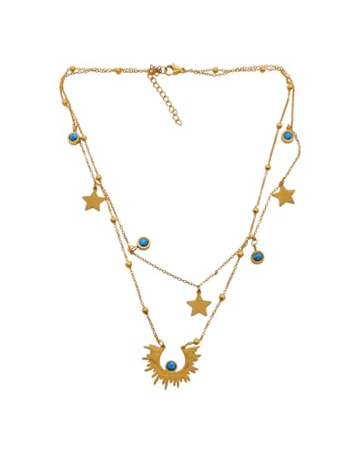 Generic - عقد مزدوج الطبقات من الستانلس ستيل بتصميم نجوم واحجار زرقاء للنساء - ذهبي