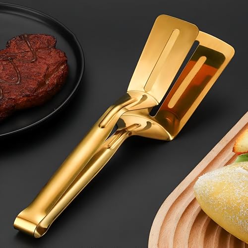 Generic - قلابة ومعلقة لتقليب الطعام وشرائح اللحم من ستانلس ستيل - أداة متعددة الاستخدامات للطعام، الخبز، اللحوم والشواء في المطبخ, متوفر فى 💎 بيجوي بيل (دهبي)