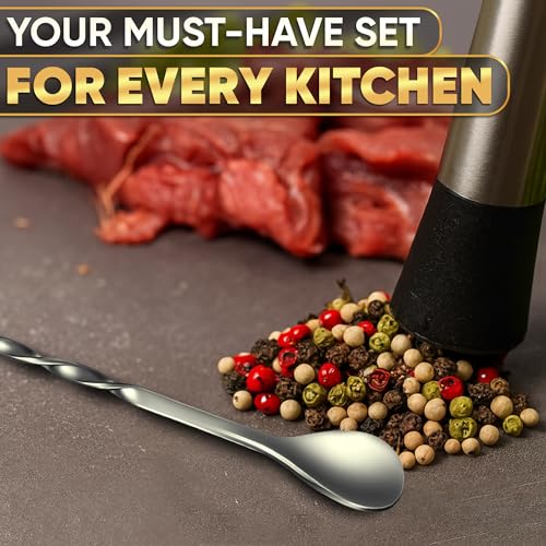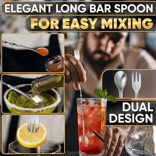 - ملعقة كوكتيل عالية الجودة: مجموعة خلط الكوكتيل هذه مع ملعقة مصنوعة من الفولاذ المقاوم للصدأ المتين مع سطح مصقول عاكس. أداة خلط الموخيتو والملعقة المخصصة للمشروبات الخاصة بنا لا تنكسر أو تتقشر أو تصدأ بسهولة وذلك بفضل المواد عالية الجودة واللمسة النهائية.