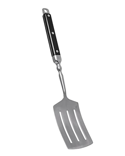 Generic - ملعقة تقليب مسطحة ومشقوقة مصنوعة من ستانلس ستيل ، فضي واسود