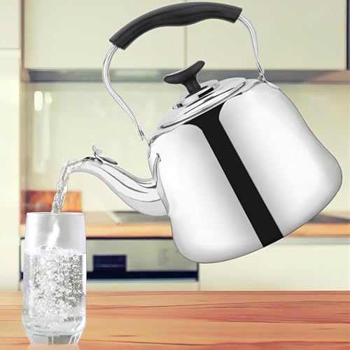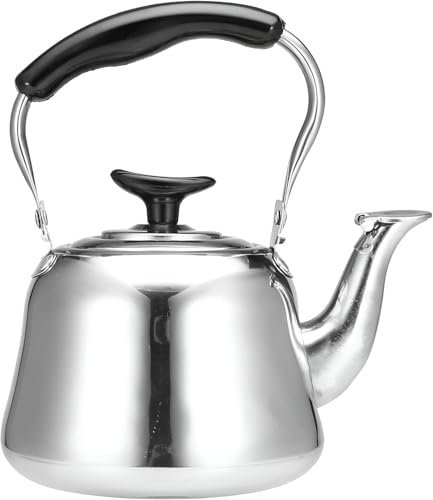 Generic - وعاء غلاية شاي من الستانلس ستيل بمقبض مقاوم للحرارة متوافق مع جميع المواقد، مصفاة شاي متضمنة، صفير عند غليان الماء (سعة 1 لتر)