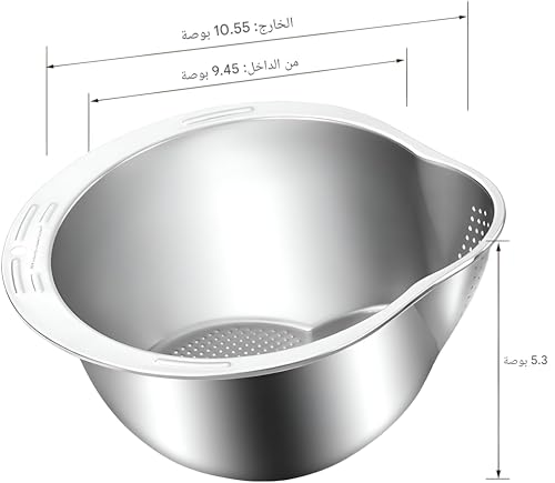 - ✔️【تصميم فريد مع مصفاة جانبية فعالة】: يسمح التصميم المائل الفريد في الجزء السفلي من المصفاة بتدفق الماء أو السوائل الأخرى بسرعة وسهولة، كما أن المصارف الجانبية تجعل من السهل غسل الأرز جيدًا قبل الطهي.