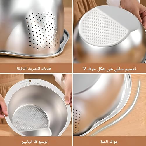 - ✔️【جودة ممتازة】: مصفاة النولدز مصنوعة من الفولاذ المقاوم للصدأ السميك الآمن غذائيًا وغير ضار بالطعام ومقاوم للتآكل ومتين. يضمن هيكلها الصلب والمواد عالية الجودة الاستخدام لفترة طويلة، مما يجعلها إضافة موثوقة لأي مطبخ.