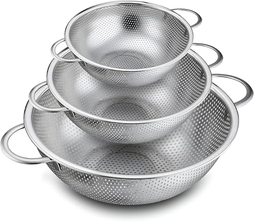 Generic - مصفاة من الستانلس ستيل - مجموعة من 3 سلال تصريف للمطبخ بمقبض مريح لغسل وتصريف الأرز بسهولة وفعالية