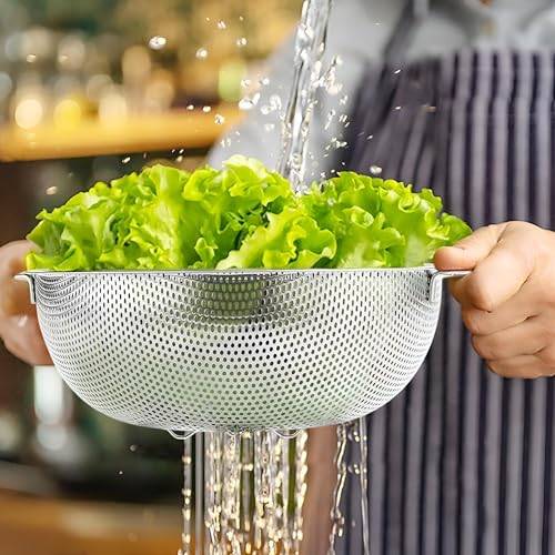 - مصنوع من الفولاذ المقاوم للصدأ عالي الجودة مع لمسة داخلية مصقولة كمرآة وطبقة خارجية مقاومة للانزلاق، تضمن هذه المجموعة من مصفّات المطبخ المتانة ومظهرًا أنيقًا ومهنيًا في أي مطبخ حديث.