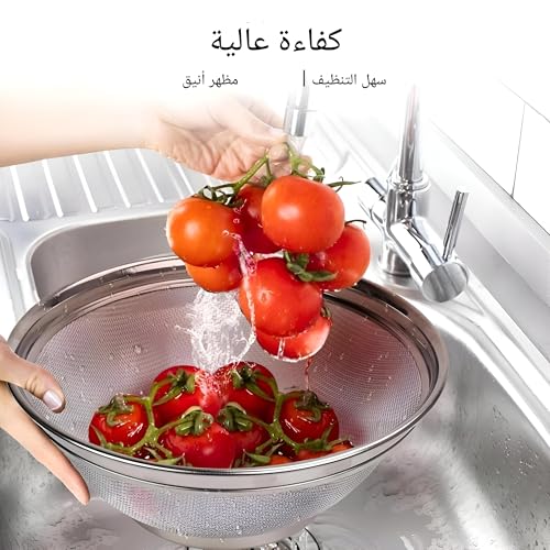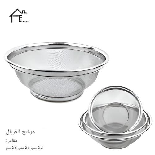 - هذا المنتج عبارة عن مجموعة من ثلاث مصافي من الفولاذ المقاوم للصدأ مصممة للاستخدام المتعدد في المطبخ. بمقاسات 22 سم و25 سم و28 سم، توفر هذه المجموعة حلاً مناسبًا لتصفية المكرونة والحبوب وشطف الخضروات. كل مصفاة مصنوعة من الفولاذ المقاوم للصدأ والمتين والآمن على الطعام، مما يضمن عدم وجود بقايا بلاستيكية تلوث طعامك، مما يجعلها إضافة آمنة وطويلة الأمد لمطبخك. الأحجام المتاحة تسمح لك باختيار المصفاة المناسبة اعتمادًا على الكمية.