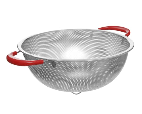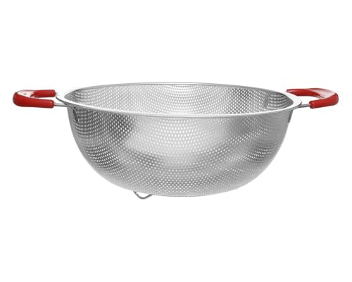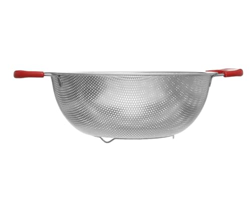 Generic - مصفاة أستانلس ستيل بمقيض بلاستيك بقواعد مقاس 28 سم فضي وأحمر