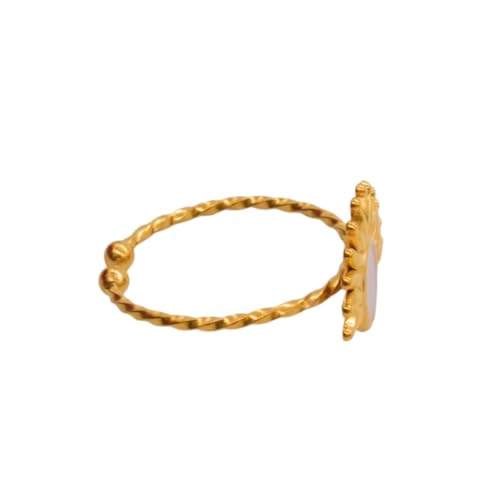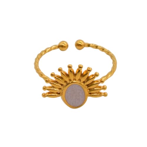Generic - خاتم من الستانلس ستيل بتصميم شمس ملتوي للنساء، مقاس واحد - ذهبي وابيض