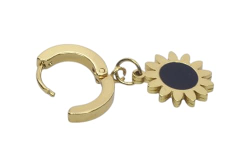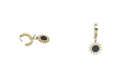 Generic - اقراط حلقية من الستانلس ستيل بدلاية على شكل زهرة عباد الشمس للنساء - ذهبي واسود