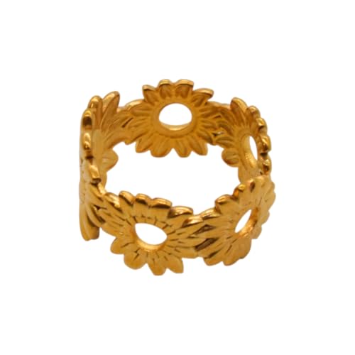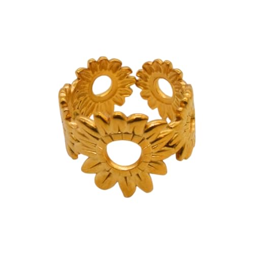 Generic - خاتم للنساء من الستانلس ستيل على شكل عباد الشمس، مقاس واحد - ذهبي