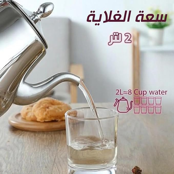 Generic - إبريق شاي من الفولاذ المقاوم للصدأ، إبريق قهوة بمصفاة - مطلي بلمسة نهائية عاكسة، سريع الغليان، متين وصحي (2 لتر)