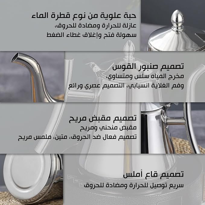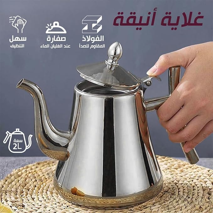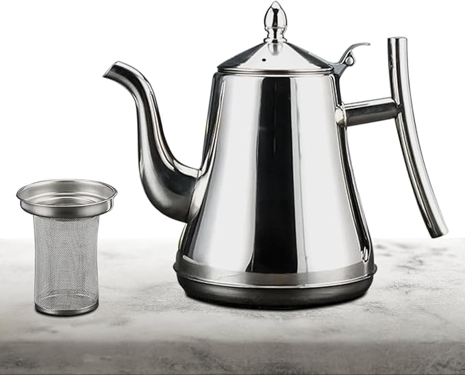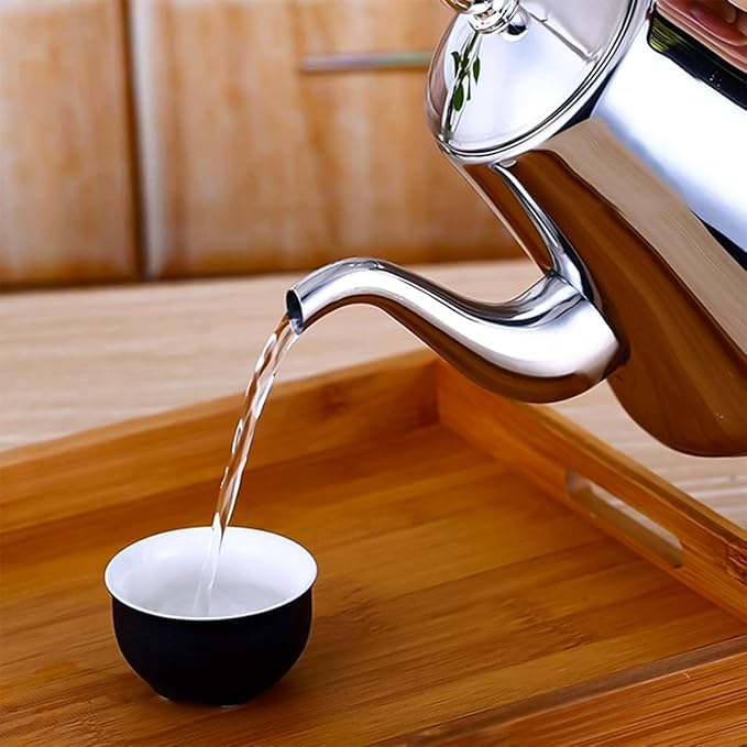 - لمسة نهائية مميزة مصقولة وعاكسة: يتميز إبريق الشاي المصنوع من الستانلس ستيل الخاص بنا بطلاء عاكس مذهل لا يضيف فقط لمسة من الأناقة إلى مطبخك ولكن أيضًا سهل التنظيف، مما يضمن لمعانه لسنوات قادمة.