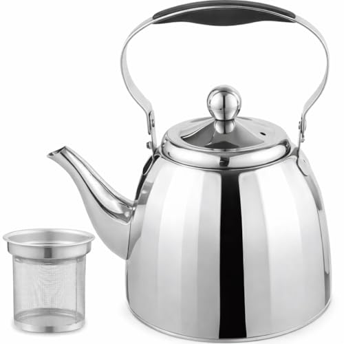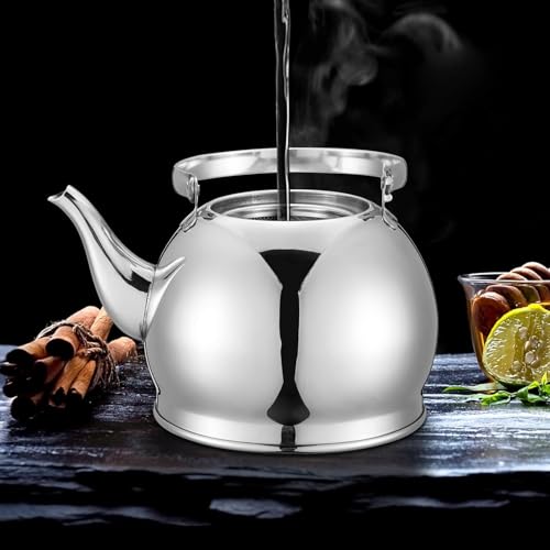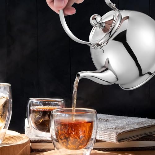 Generic - إبريق شاي من الفولاذ المقاوم للصدأ بمصفاة قابلة للإزالة، فضي، سعة 1 لتر/ 1.5 لتر/ 2 لتر (سعة 1 لتر)