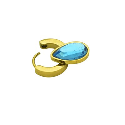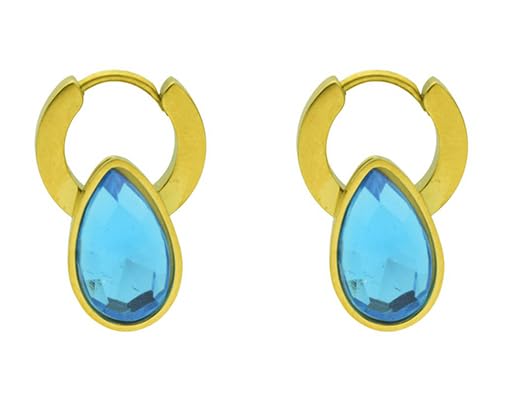 Generic - اقراط حلقية من الستانلس ستيل على شكل دمعة من الاحجار الكريمة الزرقاء للنساء - ذهبي وازرق