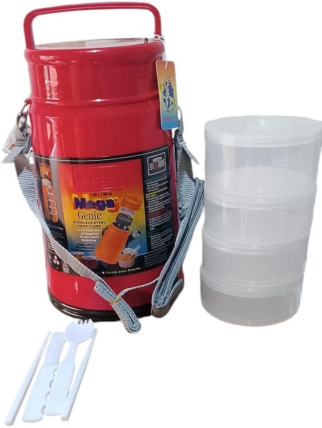 Generic - حافظة طعام حراريه من الاستانلس ستيل لحفظ الطعام الساخن والبارد مع 4 حاويات سعة 2 لتر