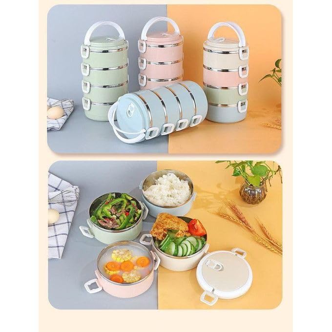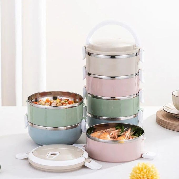 Generic - علبة غداء حرارية من الفولاذ المقاوم للصدأ - وعاء محمول متعدد الطبقات مثالي للسفر والتخييم
