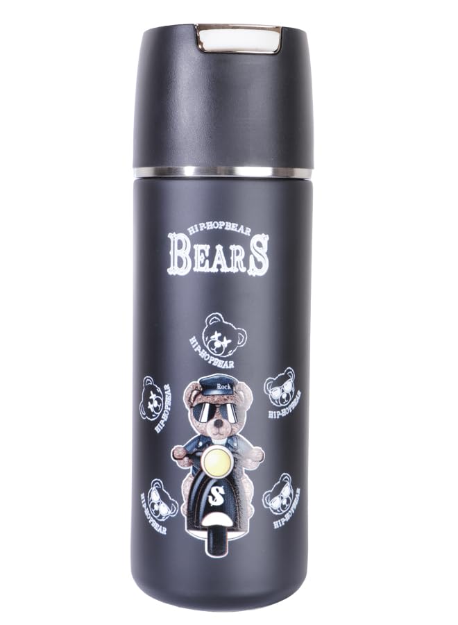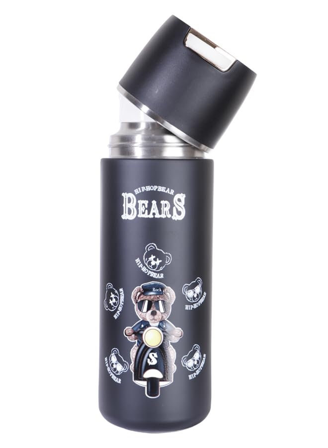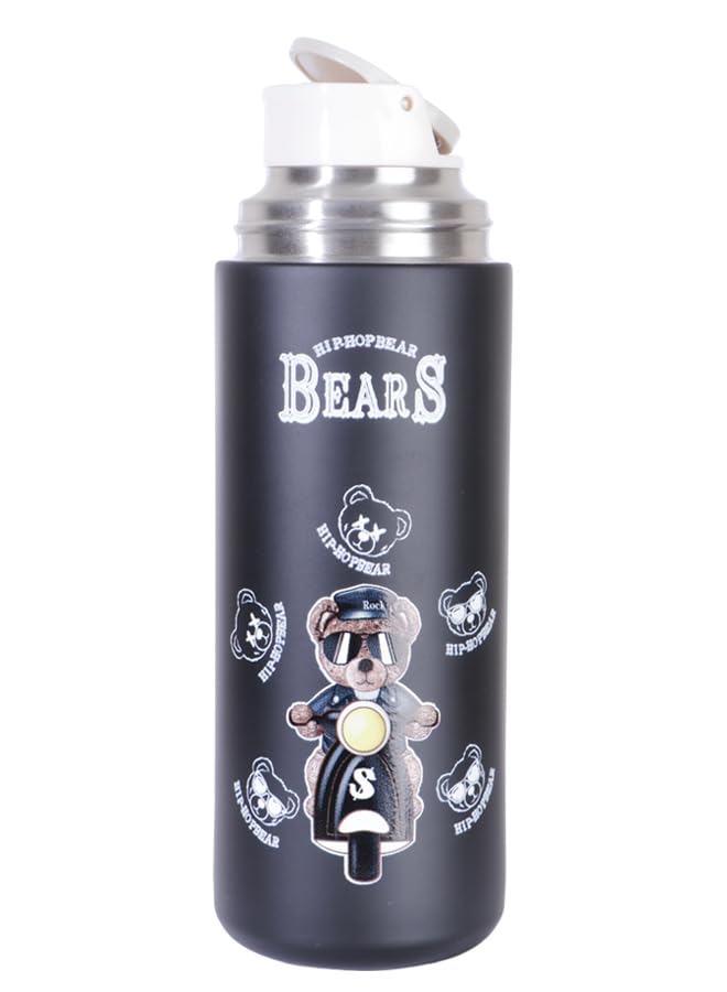 Generic - مج حراري ستانلس ستيل – تصميم دب هيب هوب BEARS باللون اسود K10