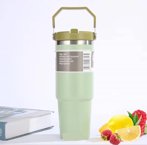 Generic - كوب ثيرمال مع شفاط، مصنوع من الستانلس ستيل، سعة 900 مليلتر، باللون الأخضر، معزول ومفرغ الهواء، عدد القطع: 1