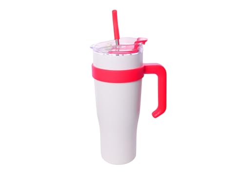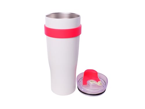 Generic - مج حراري معزول حراريًا من الفولاذ المقاوم للصدأ مع شفاطة، أبيض وأحمر، 1 لتر