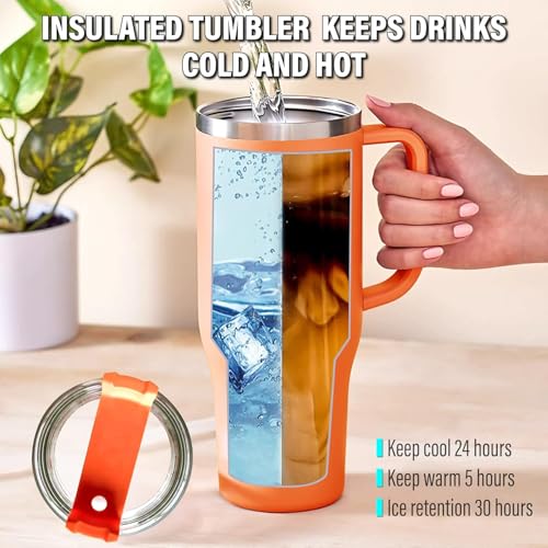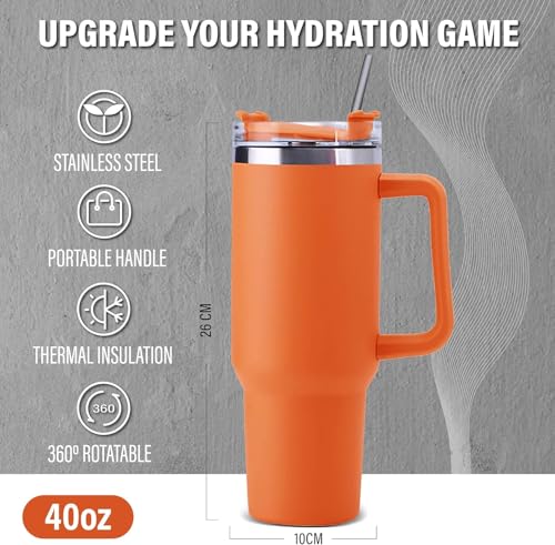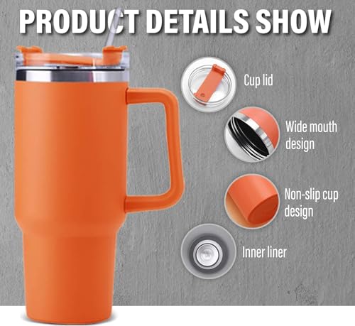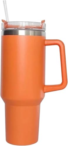 Generic - كوب سفر حراري من الفولاذ المقاوم للصدأ مع شفاطة، كوب قهوة معزول بجدار مزدوج مزود بمقبض وبغطاء مانع للتسرب للحفاظ على المشروبات ساخنة وباردة، كوب قابل لإعادة الاستخدام للسيارة والمكتب والمنزل، برتقالي