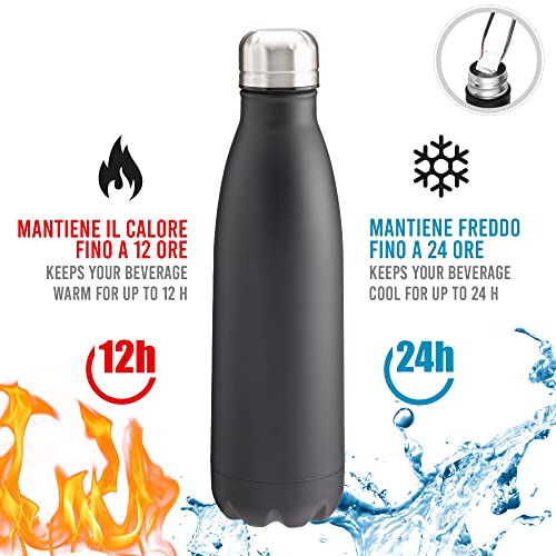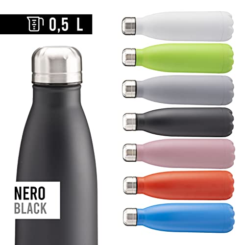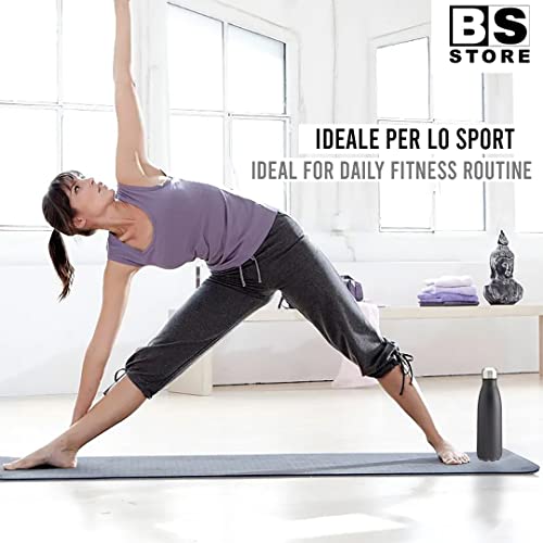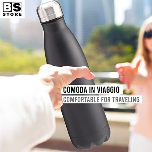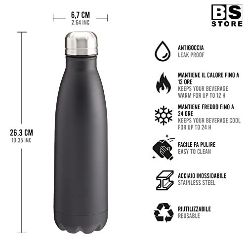 BS Store - زجاجة مياه حرارية من الستانلس ستيل بجدار مزدوج معزول - 500 مل - زجاجة حرارية، ثيرموس قابلة لاعادة الاستخدام للرياضة وصالة الالعاب الرياضية والسفر (اسود)