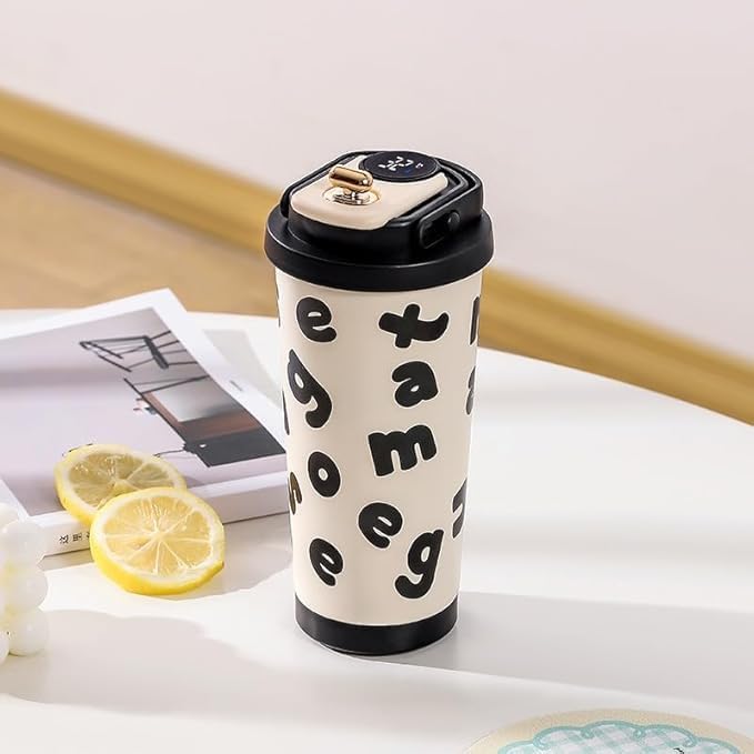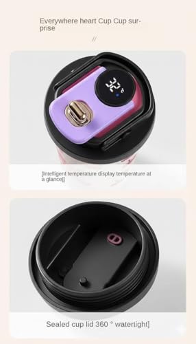 Generic - كوب ثيرموس ستانلس ستيل 500 مل مع مؤشر درجة حرارة LED، كوب قهوة للسفر معزول بتفريغ الهواء مع مقبض، غطاء مقاوم للانسكاب ومانع للتسرب للمشروبات الساخنة والباردة والعمل والسيارة، F-1412 (اسود)