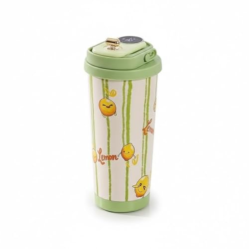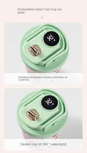 Generic - كوب ثيرموس ستانلس ستيل 500 مل مع مؤشر درجة حرارة LED، كوب قهوة للسفر معزول بتفريغ الهواء مع مقبض، غطاء مقاوم للانسكاب ومانع للتسرب للمشروبات الساخنة والباردة والعمل والسيارة، F-1412 (اخضر)