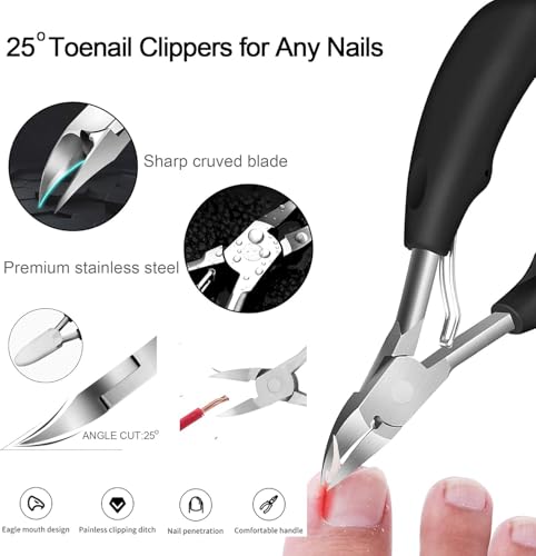 Generic - قصافة أظافر من الفولاذ المقاوم للصدأ للأظافر السميكة، أدوات مانيكير للأظافر النامية، أسود