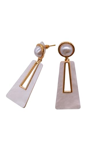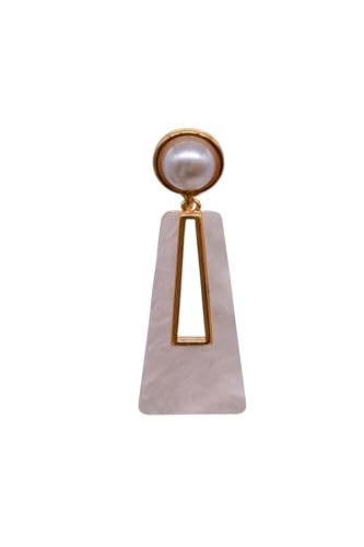 Generic - اقراط من الستانلس ستيل على شكل شبه منحرف مع اقراط لؤلؤ للنساء - ذهبي