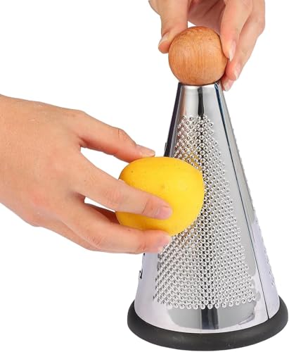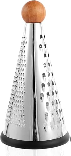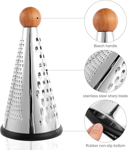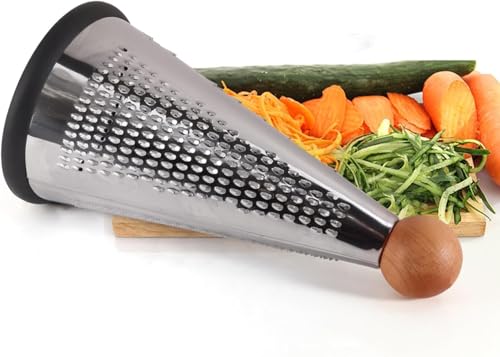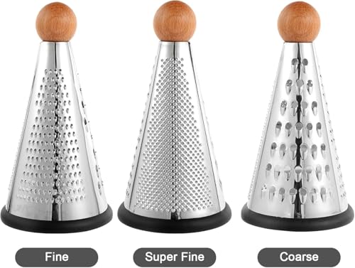 Generic - مبشرة ثلاثية من الستانلس ستيل للخضروات والجبن، مبشرة مخروطية من 3 اتجاهات، مع مقبض خشبي مانع للانزلاق وقاعدة مطاطية مضادة للانزلاق