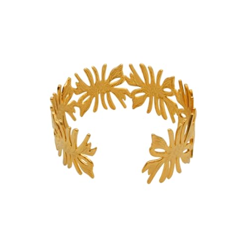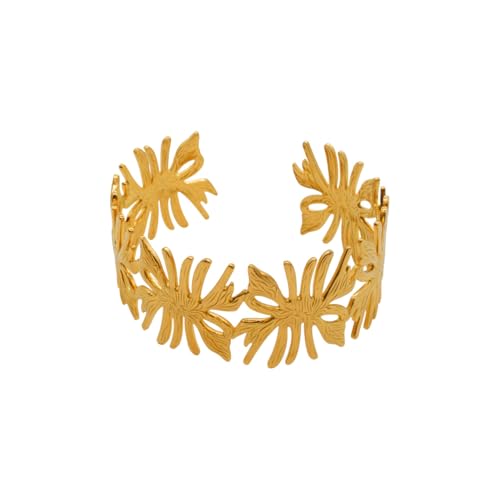 Generic - سوار للنساء من الستانلس ستيل بتصميم زهور استوائية، مقاس واحد - ذهبي