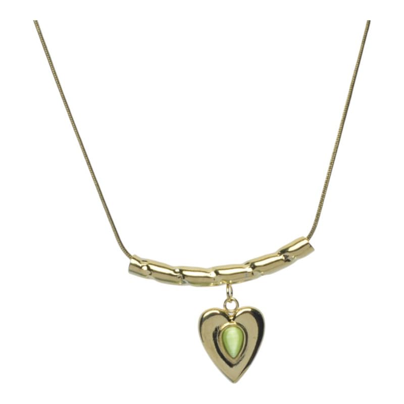 Generic - عقد بقضيب أنبوبي بدلاية على شكل قلب من الفولاذ المقاوم للصدأ للنساء - ذهبي وأخضر