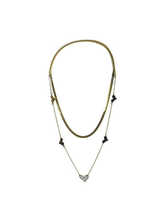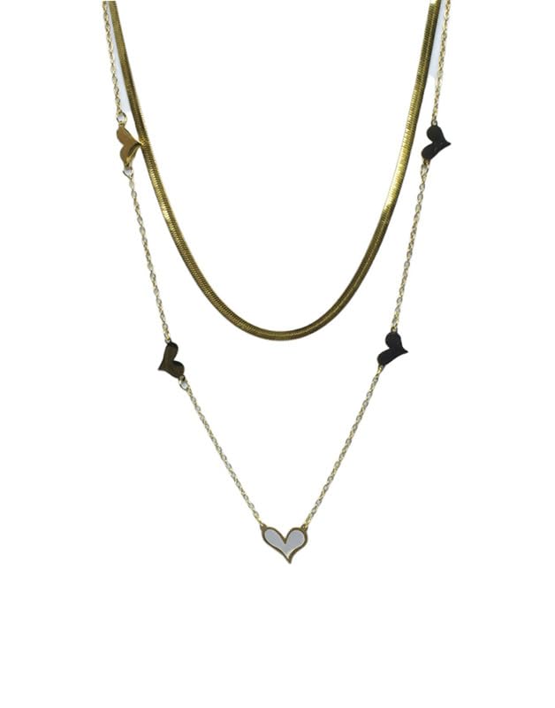 Generic - عقد توأم من الستانلس ستيل بتصميم قلب صغير للبنات - ذهبي وابيض