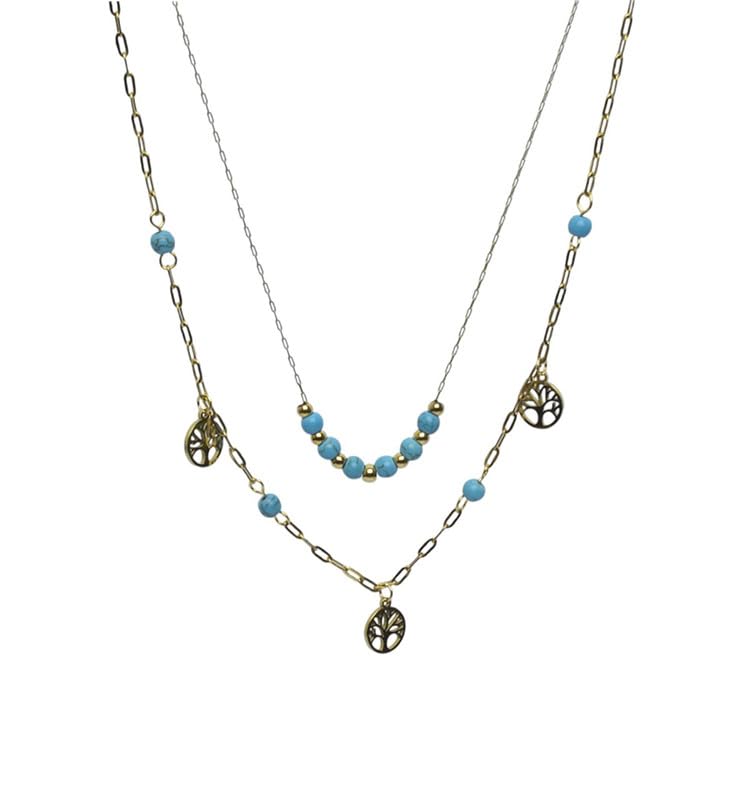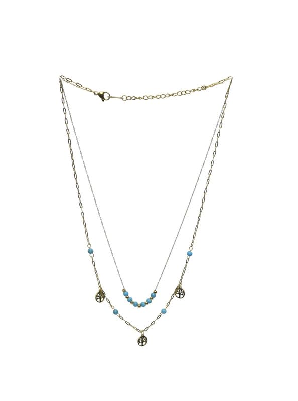 Generic - عقد توينز من الستانلس ستيل بتصميم خاص للبنات - ذهبي وازرق