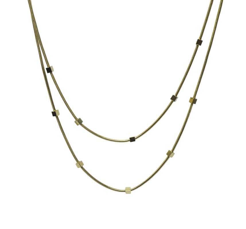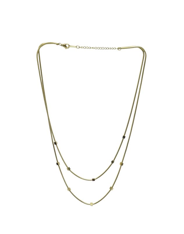 Generic - عقد توينز من الستانلس ستيل بتصميم مربع للبنات - ذهبي