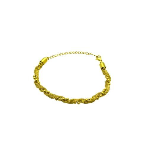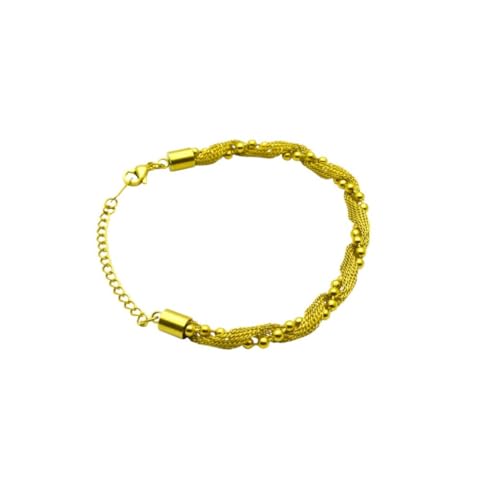 Generic - سوار سلسلة من الستانلس ستيل مزين بخرز شبكي للنساء - ذهبي