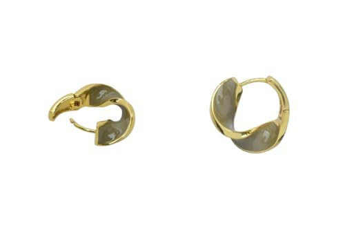 Generic - اقراط حلقية ملتوية من الستانلس ستيل مع ترصيع للنساء - ذهبي زيتي