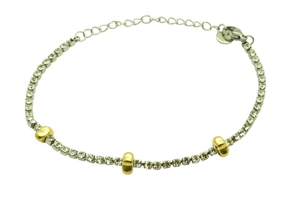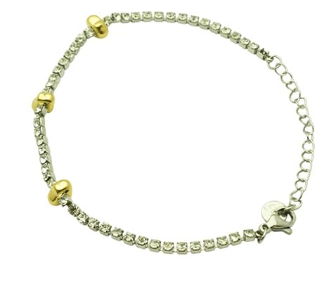 Generic - سوار سلسلة تنس من الستانلس ستيل بلونين للنساء - فضي وذهبي