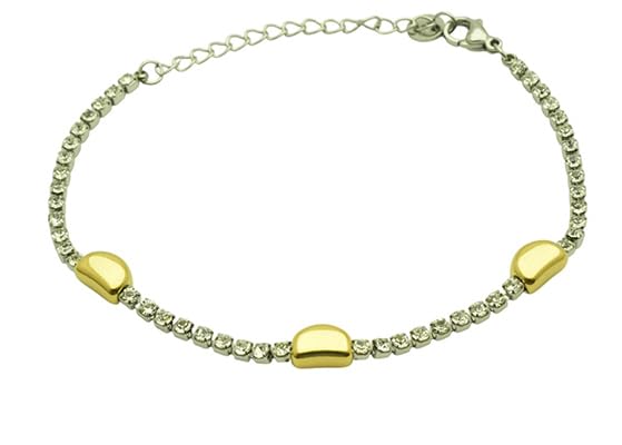Generic - سوار سلسلة تنس بلونين من الستانلس ستيل مع لمسات ذهبية للنساء - ذهبي وفضي