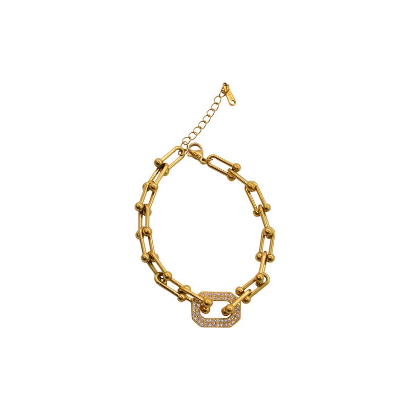 Generic - سوار سلسلة بحلقات على شكل حرف U من الستانلس ستيل للنساء - ذهبي 1899-مسبح-AR376