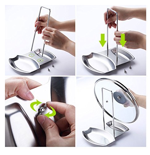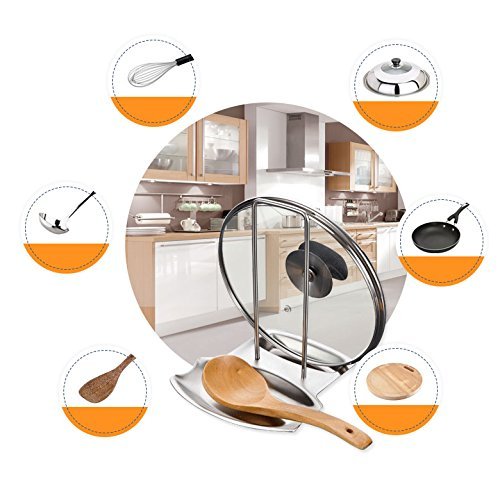 other - رف ومسند ملاعق واغطية لحمل اغطية الاواني ومستلزمات المطبخ، مصنوع من الستانلس ستيل من يوميم، فضي
