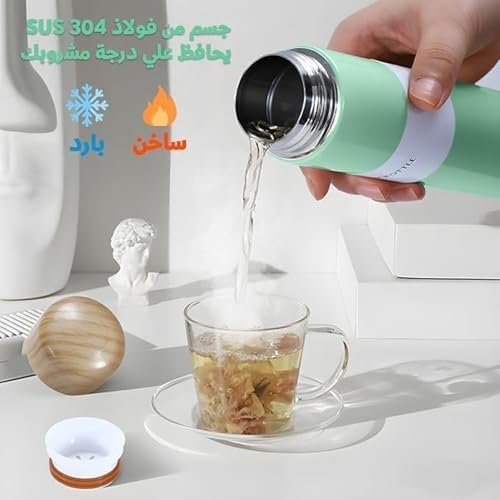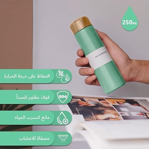 Generic - زجاجة مفرغة من الهواء من الستانلس ستيل، 250 مل، قارورة حرارية محمولة مع غطاء من الخشب الحبيبي، مانعة للتسرب، كوب سفر للمشروبات الساخنة والباردة اختر ما يناسبك (اخضر مينت)