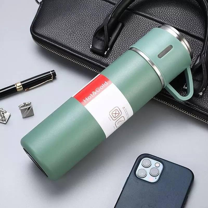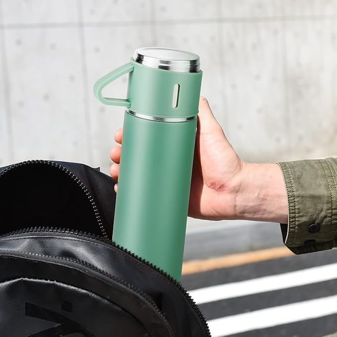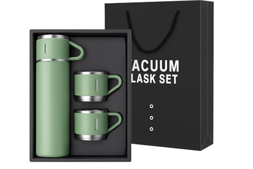 Generic - ترمس حراري من فولاذ مقاوم للصدأ معزول بتفريغ الهواء مقاوم للتسرب يحتفظ بالحرارة والبرودة لمدة 12 ساعة مع 3 أكواب مناسب للسفر والمشي لمسافات طويلة والمكتب والمدرسة، سعة 500 مل، أخضر