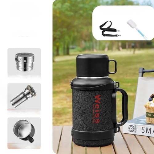 Generic - قارورة مفرغة من الهواء من الستانلس ستيل بجدار مزدوج معزول بسعة كبيرة للمشروبات الساخنة والباردة، تصميم مقاوم للتسرب، سعة 2 لتر، F-1528 (اسود)