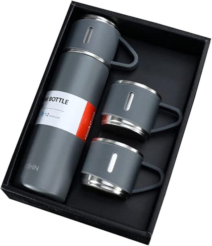 Generic - طقم ترمس حراري من فولاذ مقاوم للصدأ، سعة 500 مل، يتضمن 3 أكواب (رمادي)